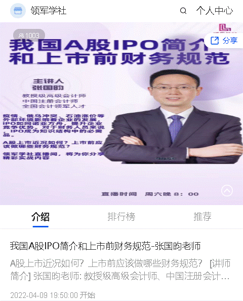 4月9日,公司組織重點業務部門參加了由全國會計領軍人才張國昀老師主講的“我國A股IPO簡介和上市前財務規范”線上培訓,學習了企業在國內資本市場IPO需重點關注事項及企業在上市前如何進行財務規范。